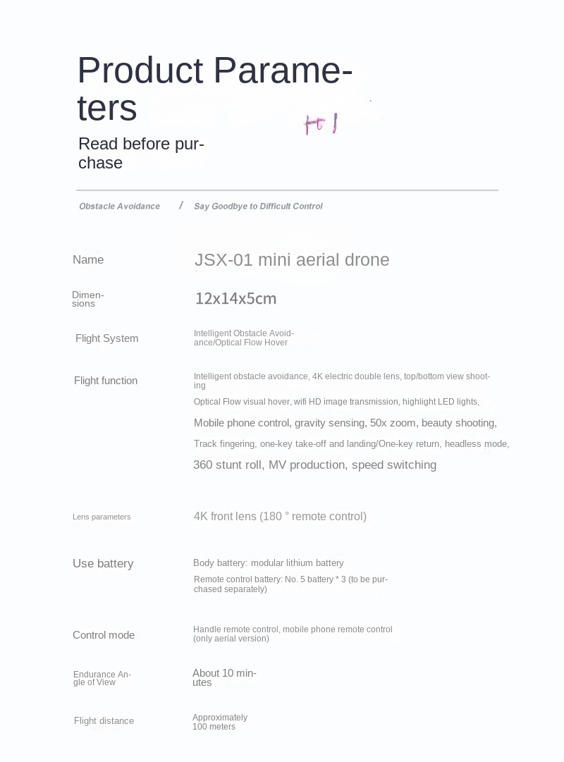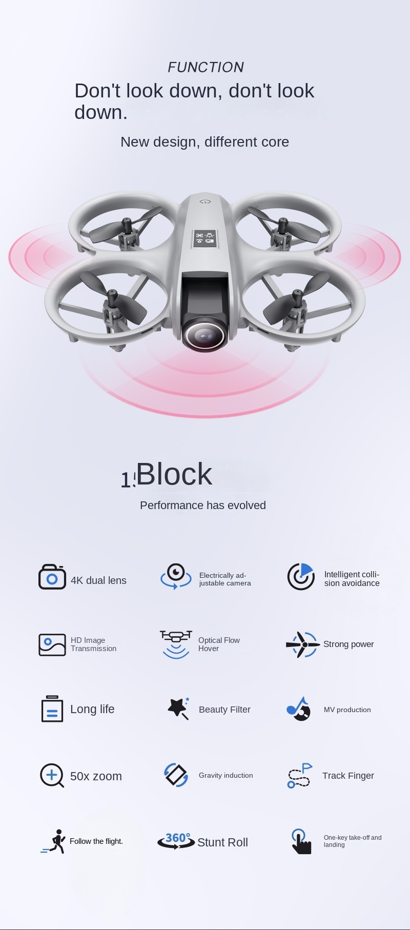 Special Features: Electric Lens + Pressure Altitude Hold / 360° Roll / Low-cost Drone